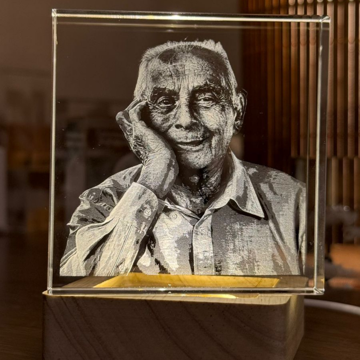 Prisma SPA trabajamos bajo un modelo de fabricación personalizada por pedido. No contamos con una tienda física de exhibición masiva porque cada cristal es una pieza única grabada exclusivamente para ti.
