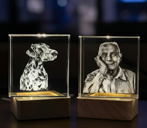 Grabados a partir de fotografías de parejas, familias, mascotas y homenajes.
